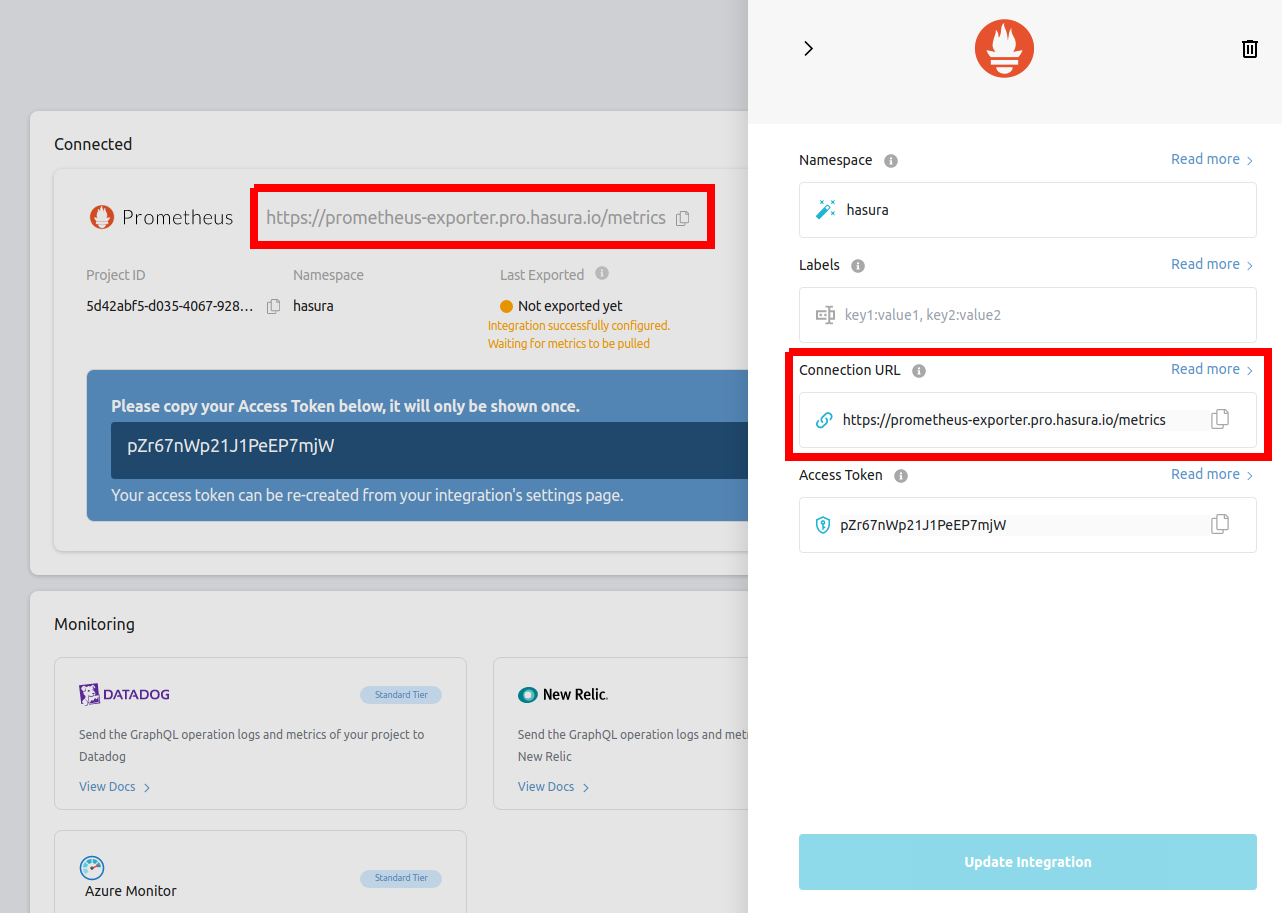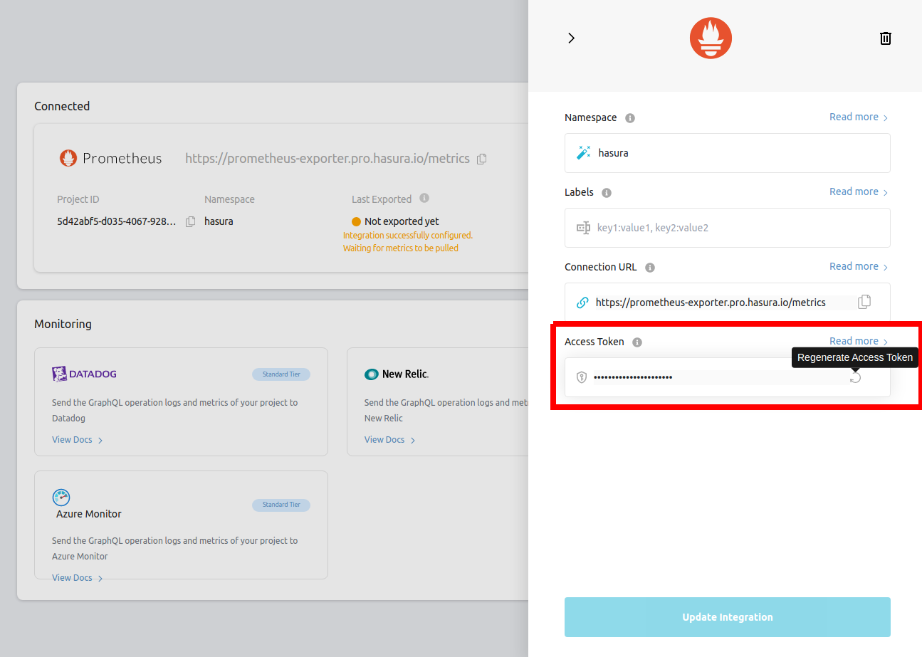 Prometheus Integration is only available for Hasura Cloud projects on the Standard (pay-as-you-go) tier and above.