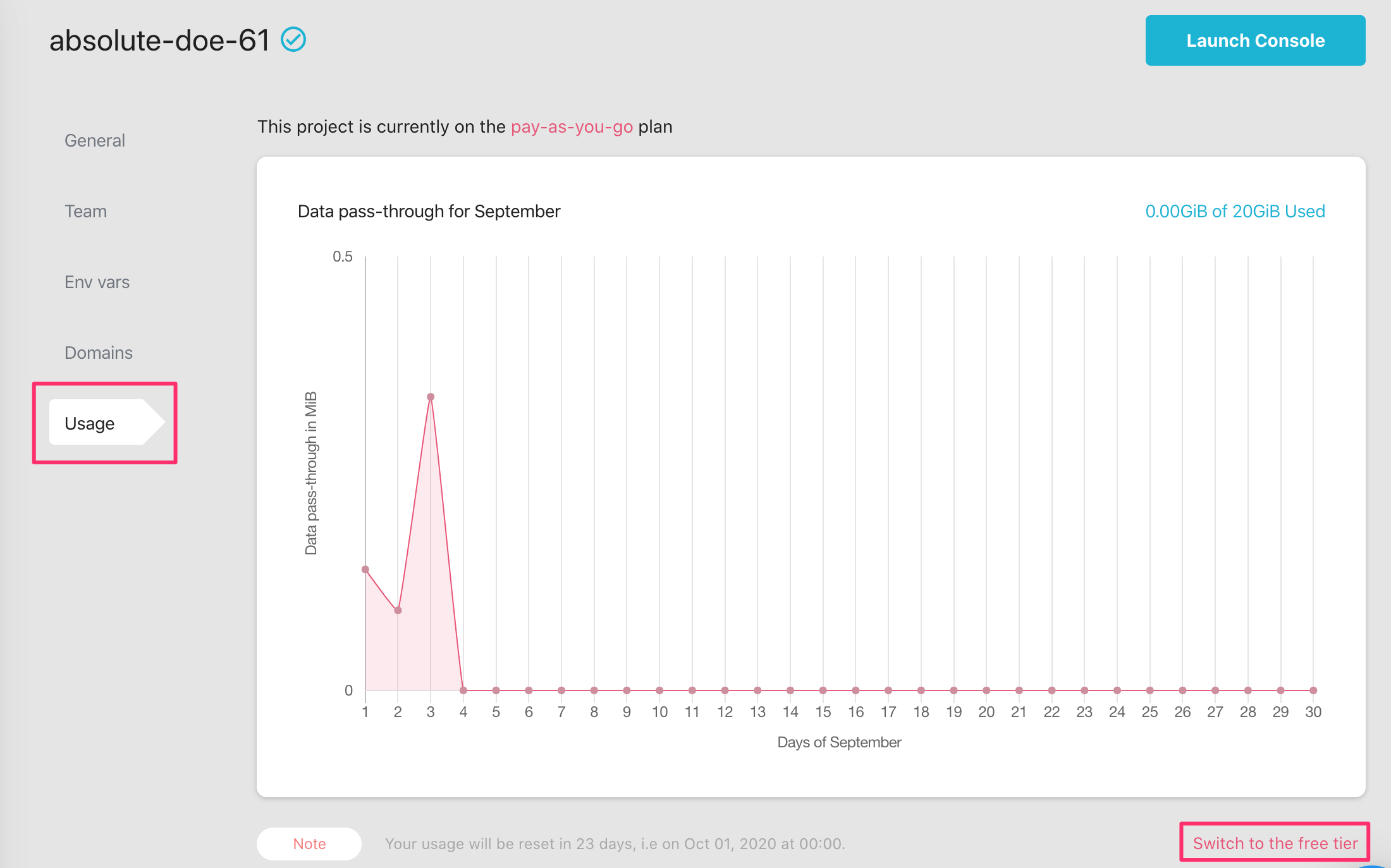 Now click on the Usage tab and then click on the link Switch to the free tier on the bottom right: