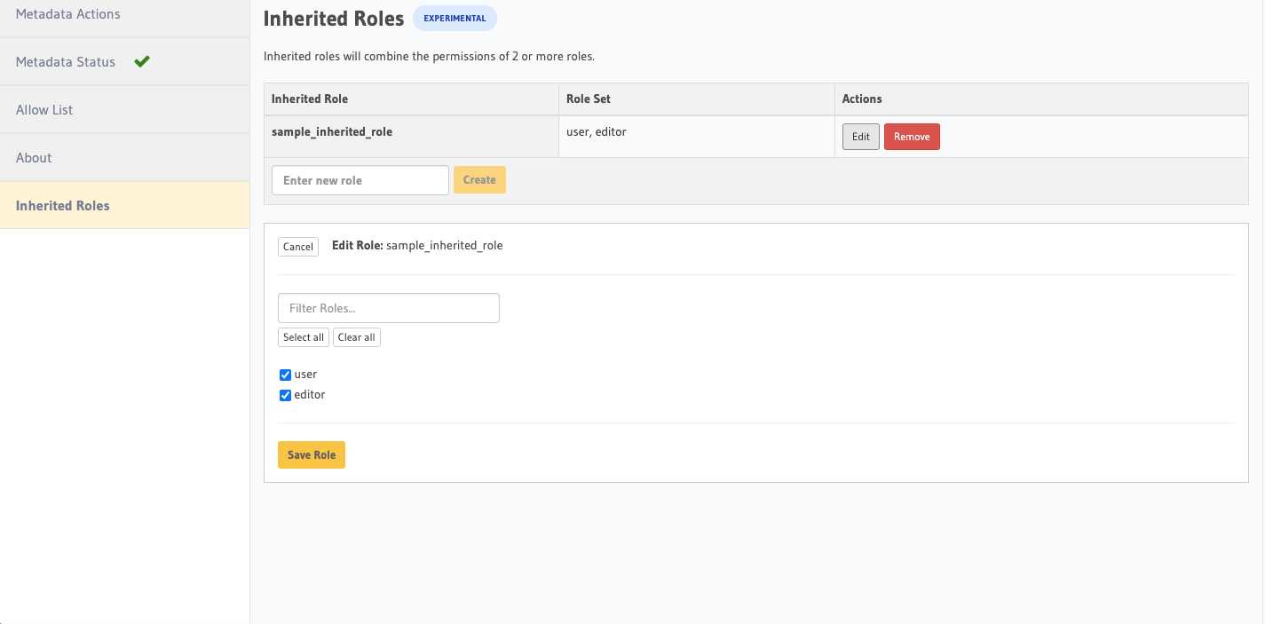 To add a new inherited role, edit the metadata/inherited_roles.yaml file adding the inherited role definition