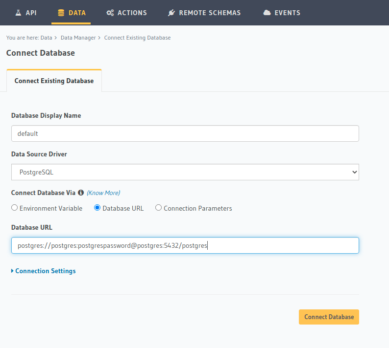 If you do not have an existing Postgres database, you can choose to connect to the Postgres