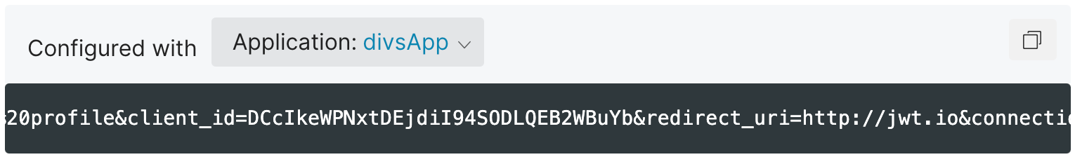 LOG INto login to your Auth0 domain.Select your application and copy the generated URL, like so: