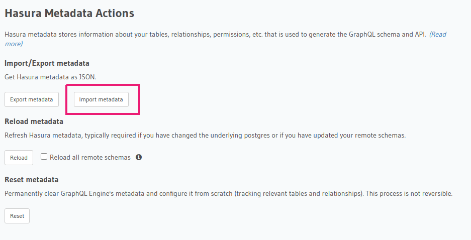 Applying/Importing Hasura metadata¶