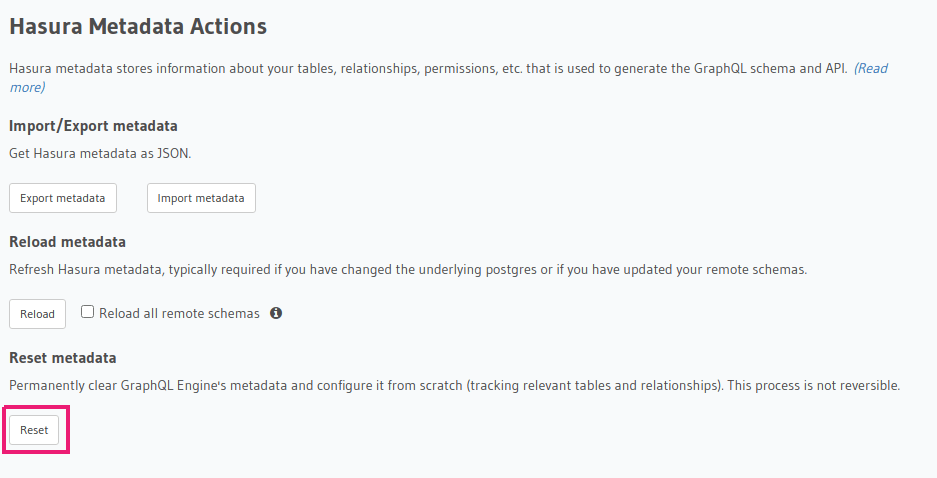 Resetting Hasura metadata¶